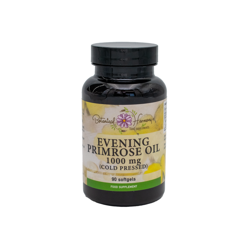 Evening Primrose Oil 1000mg is a cold-pressed supplement rich in essential fatty acids, particularly GLA (Gamma-Linolenic Acid). It is widely used to support skin health, hormonal balance, and overall well-being. Easy-to-swallow softgels make it a convenient addition to your daily routine.